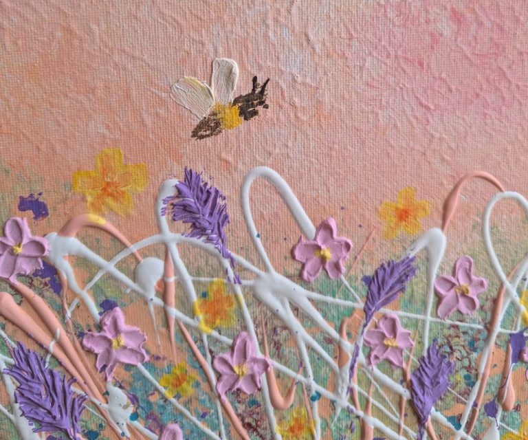 Jetzt wird es lebendig und fühlbar: Die Blumen entstehen mit Strukturpaste, wodurch dein Bild Tiefe, Spannung und eine ganz besondere Haptik erhält. Jede Blumenwiese wird dabei so individuell wie ihre Künstlerin oder ihr Künstler.